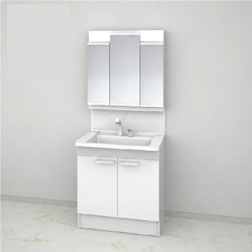 間口750mm シングルレバー水栓 開き扉 3面鏡 -