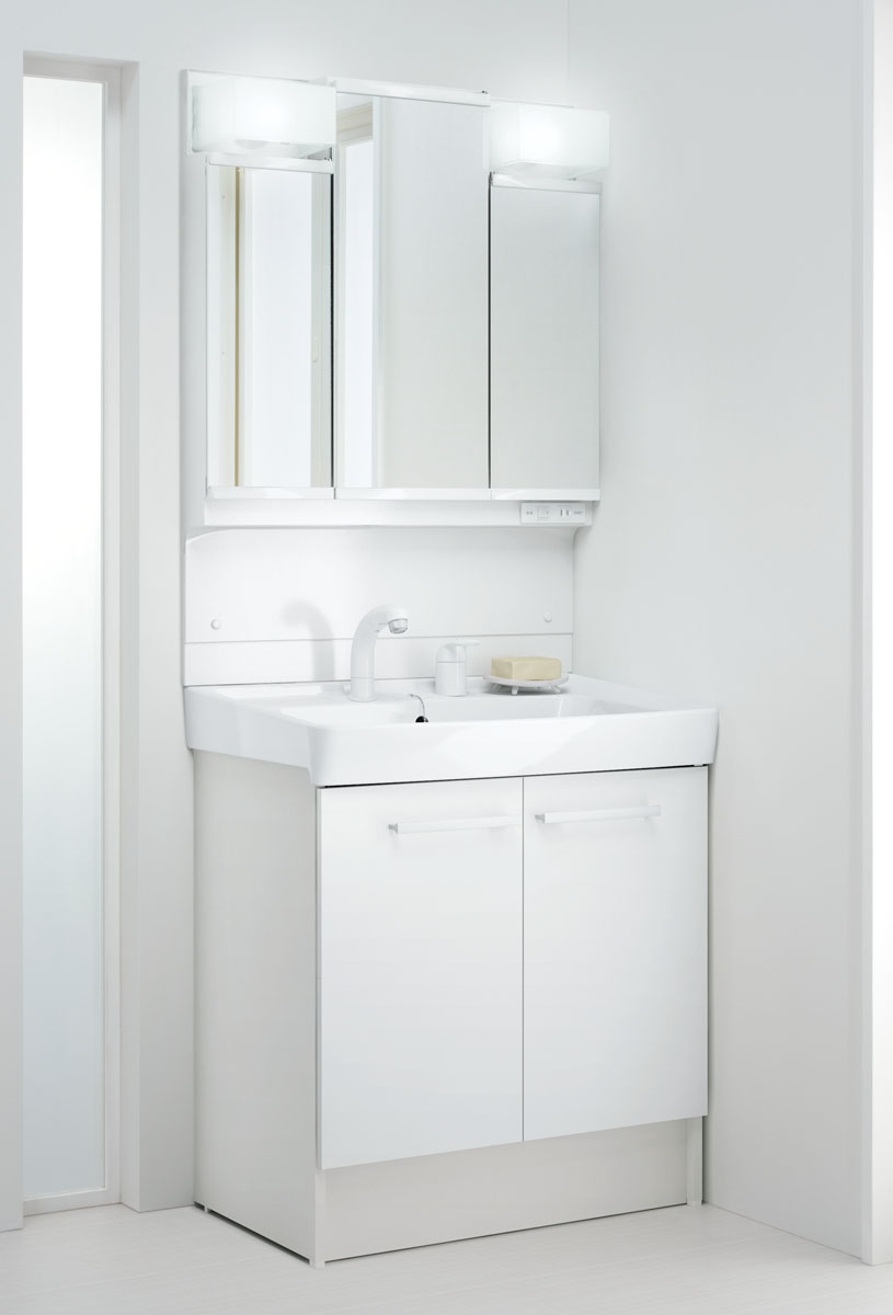 間口750mm シングルレバー水栓 開き扉 三面鏡 -